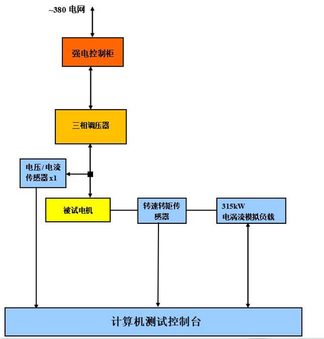 轉(zhuǎn)速扭矩傳感器(或轉(zhuǎn)速傳感器、負(fù)荷傳感器)、電流傳感器、電壓傳感器、溫度傳感器、振動(dòng)噪聲傳感器、可控模擬負(fù)載器(電力測(cè)功機(jī)、電渦流模擬負(fù)載、水渦流模擬負(fù)載等),鑄鐵安裝平臺(tái)、工裝夾具、聯(lián)軸器、電控柜、計(jì)算機(jī)數(shù)據(jù)采集實(shí)時(shí)控制系統(tǒng)、智能電參數(shù)測(cè)量?jī)x(或功率分析儀)、電機(jī)測(cè)試軟件、MAP效率云圖。